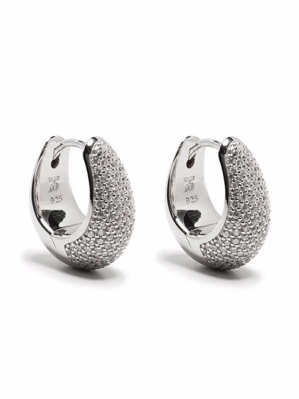 Ice Hoop pave earrings silver-tone pave setting chunky hoop design clasp fastening engraved detail polished finish for pierced ears These earrings come as a pair. Imported SIZE & FIT Model measurements Height 5 ft 9 in(1.76 m) Bust/Chest 33.07 in(84 cm) Hips 34.64 in(88 cm) Waist 25.59 in(65 cm) Measurement HEIGHT 0.59 in(1.5 cm) Weight (single earring) 4 g(4 g) WIDTH 0.27 in(0.7 cm)