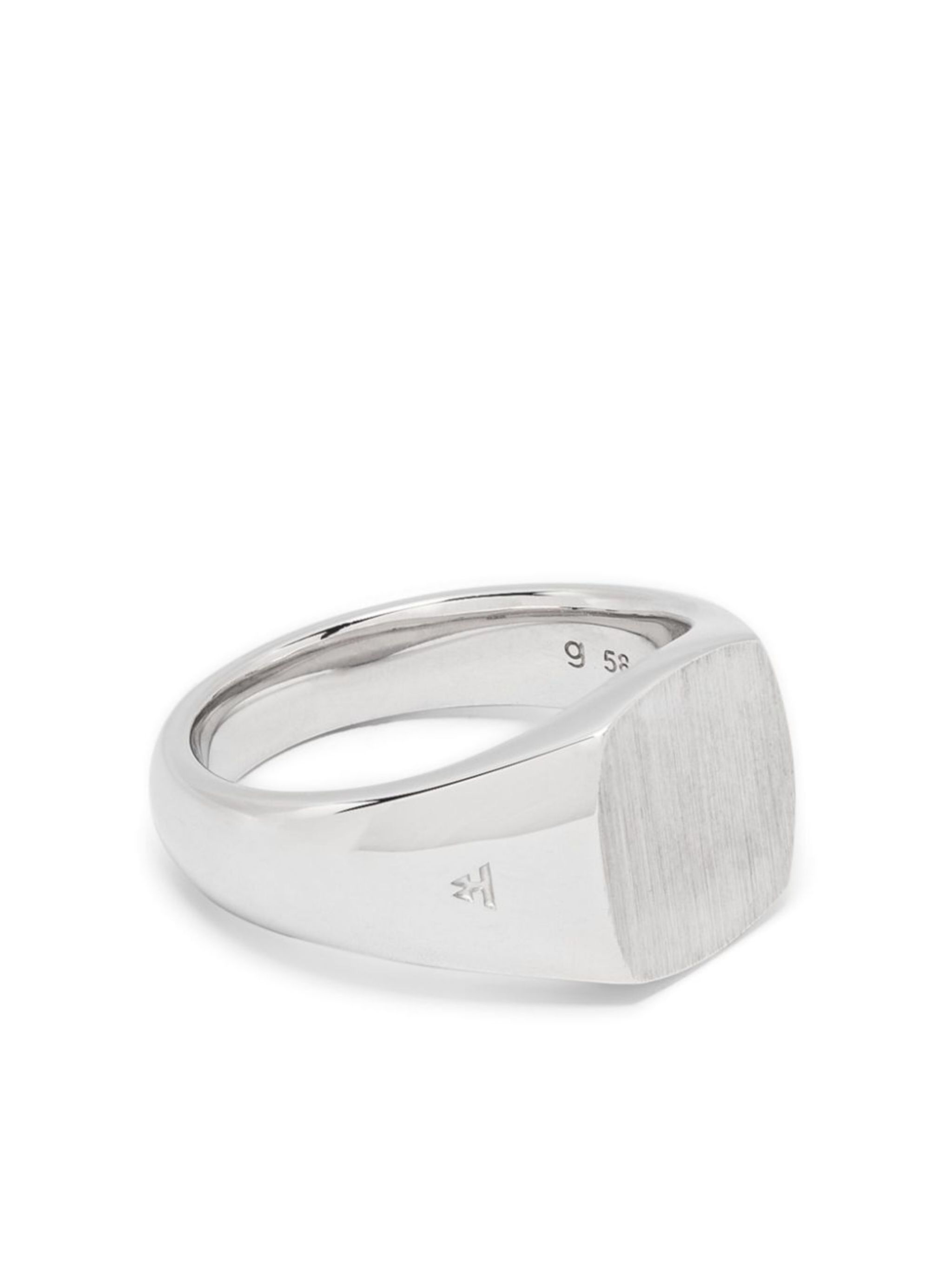 silver-tone sterling silver white rhodium plated sterling silver polished/satin finish signet band Size & Fit Model Measurements: Height: 1.86 m Bust/Chest: 91.0 cm Hips: 93.0 cm Waist: 72.0 cm Model wears size 58 Fabric and Care Designer Style ID: 100568 Designer Colour: SILVER Composition: White rhodium plated sterling silver 100%, Recycled sterling silver 100%Made in Thailand