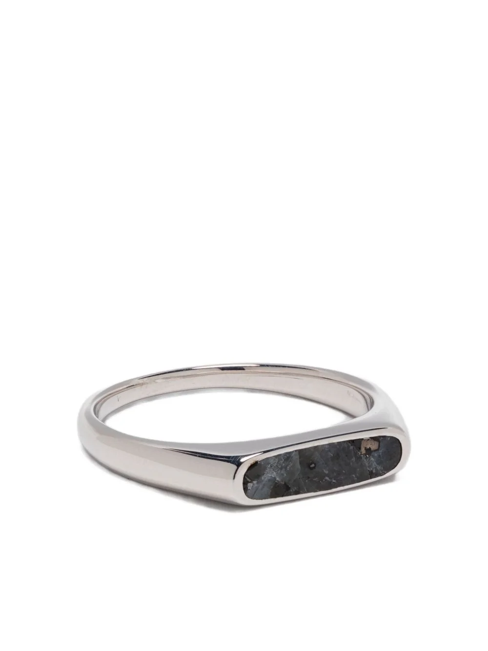 larvikite sterling silver signet ring Highlights - Silver-tone - Sterling silver - Larvikite stone - Rectangular stone - Signet style - Flat band Imported SIZE & FIT Measurement Band Width 0.07 in(0.2 cm) CIRCUMFERENCE 2.44 in(6.2 cm) Feature Length 0.15 in(0.4 cm) Feature Width 0.59 in(1.5 cm)