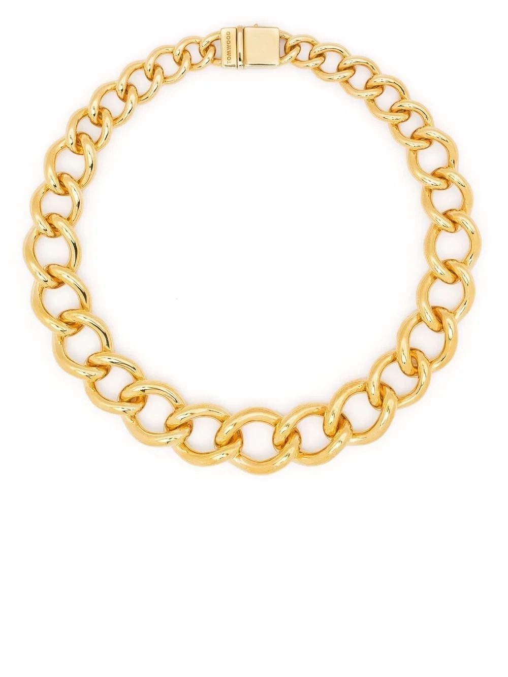 Liz chain necklace Tom Wood embraces its typically chunky aesthetic this season. Finished with a thick chain-link design, this gold-plated sterling silver Liz necklace is a standout piece amongst the rest of the collection. Imported SIZE & FIT Model measurements Height 5 ft 10 in(1.78 m) Bust/Chest 31.49 in(80 cm) Hips 36.22 in(92 cm) Waist 25.59 in(65 cm) Measurement CIRCUMFERENCE 17 in(43.2 cm) WIDTH 0.94 in(2.4 cm)