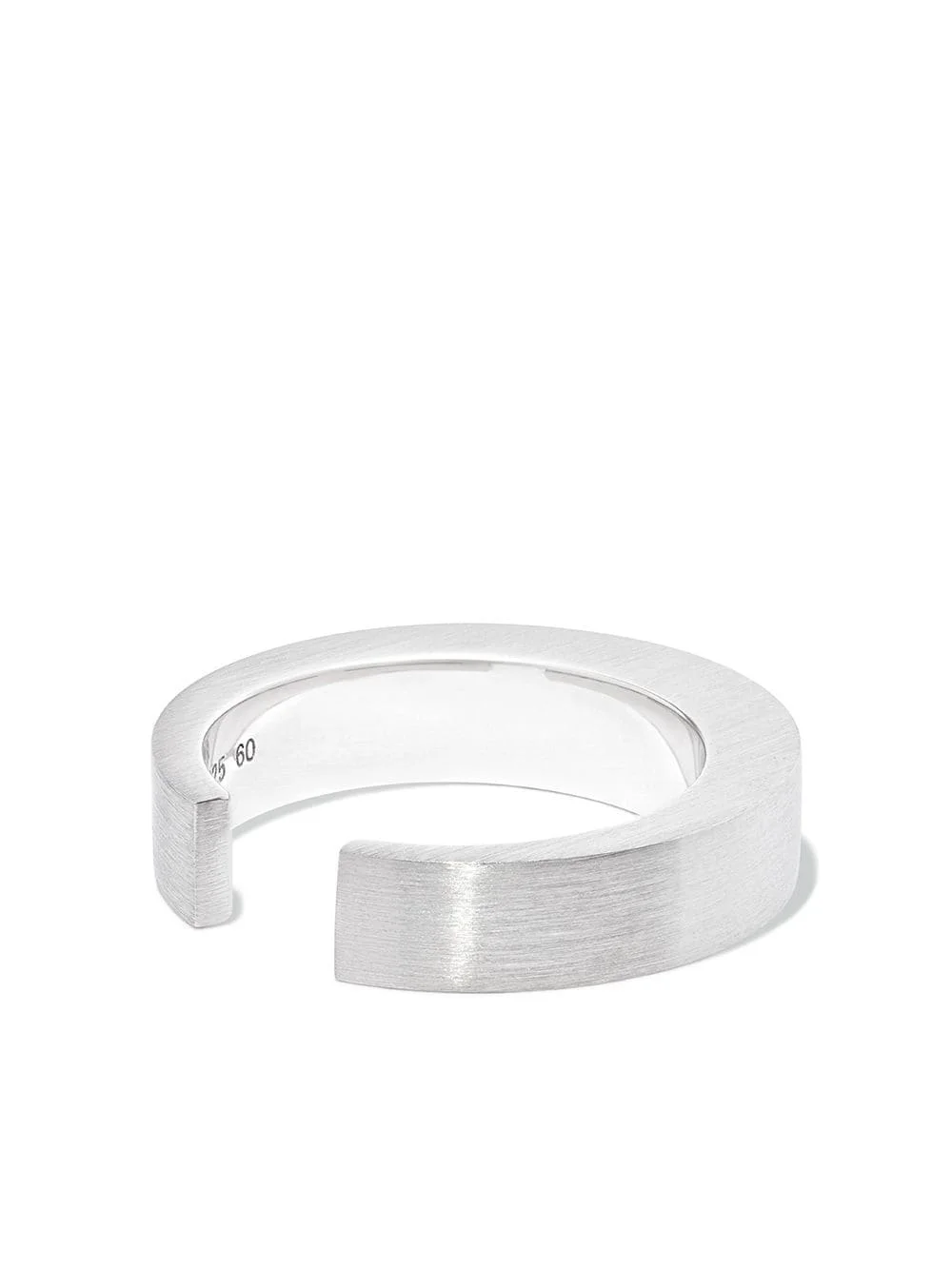 open-front sterling silver ring Tom Wood's ring offers a modern take on classic bands. This understated iteration has an open-front design and is crafted from recycled sterling silver plated with rhodium to help prevent tarnishing. Highlights - Recycled silver - Rhodium plating - Open front - Brushed effect Imported