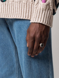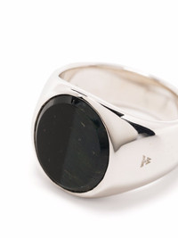 oval blue hawk eye signet ring Tom Wood takes inspiration from Scandinavian minimalism and functionalism, re-interpreting the classic signet ring with its modern and bold designs. Crafted in sterling silver, this oval-shaped signet ring is reiterated in blue hawk eye encapsulating the designer’s contemporary aesthetic. Imported SIZE & FIT Model measurements Height 6 ft 2 in(1.88 m) Bust/Chest 36.61 in(93 cm) Hips 35.82 in(91 cm) Waist 27.95 in(71 cm) Measurement Band Width 0.23 in(0.6 cm) CIRCUMFERENCE 2.28 in(5.8 cm) Feature Length 0.62 in(1.6 cm) Feature Width 0.51 in(1.3 cm)