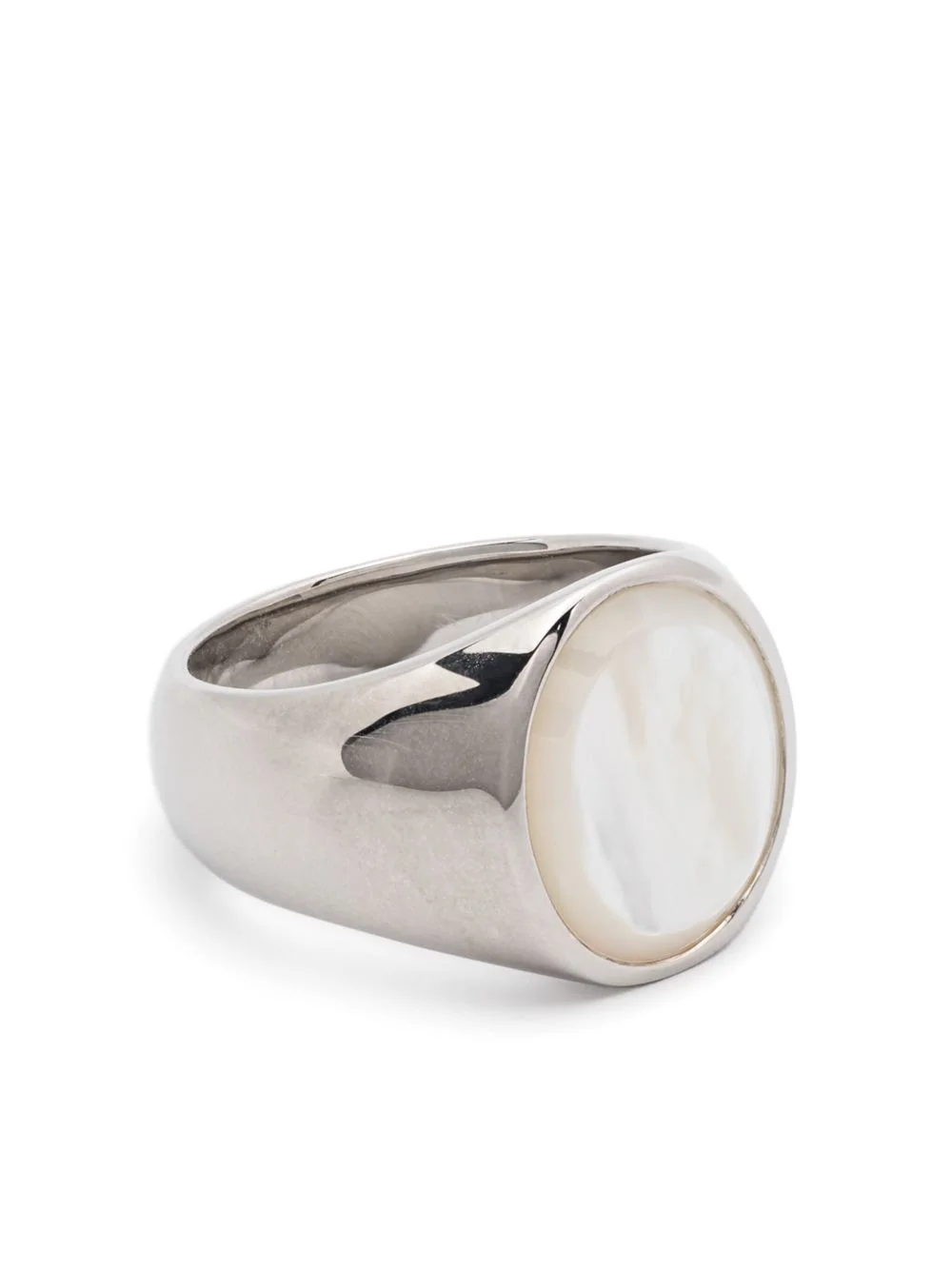 oval Mother-of-Pearl ring Highlights - Silver-tone - Signet band - Engraved logo - Normal everyday use and external agents may reduce the lustre of gemstones and gold surfaces. to maintain, use specific, non-abrasive products specially meant for cleaning jewellery. Imported SIZE & FIT Measurement Band Width 0.23 in(0.6 cm) CIRCUMFERENCE 22.04 in(56 cm) Feature Length 0.59 in(1.5 cm) Feature Width 0.55 in(1.4 cm)