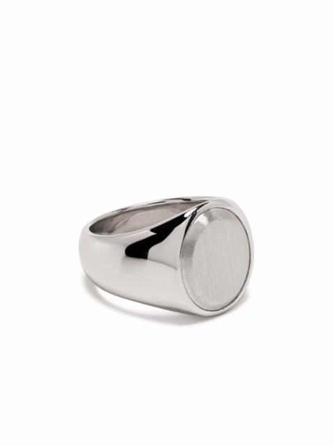Oval Silver Top ring Tom Wood's ring forms the brand's signature oval shape. This sterling silver iteration is accented with a bezel-set satin-finish top plate. Highlights - Sterling silver - Polished finish - Satin finish - Oval body Imported SIZE & FIT Model measurements Height 6 ft 1 in(1.85 m) Bust/Chest 37.79 in(96 cm) Hips 37.4 in(95 cm) Waist 30.7 in(78 cm) Measurement Band Width 0.31 in(0.8 cm) CIRCUMFERENCE 2.2 in(5.6 cm)