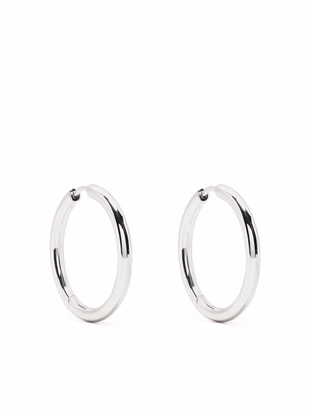 large classic hoop earrings Understated minimalism defines Tom Wood's designs and this pair is testament. Crafted in sterling silver, these earrings feature sleek classic large hoops that encapsulate the House's pared-back aesthetic. Imported SIZE & FIT Model measurements Height 5 ft 10 in(1.79 m) Bust/Chest 33.07 in(84 cm) Hips 35.82 in(91 cm) Waist 24.01 in(61 cm) Measurement HEIGHT 1.14 in(2.9 cm) Weight (single earring) 7 g(7 g) WIDTH 0.11 in(0.3 cm)