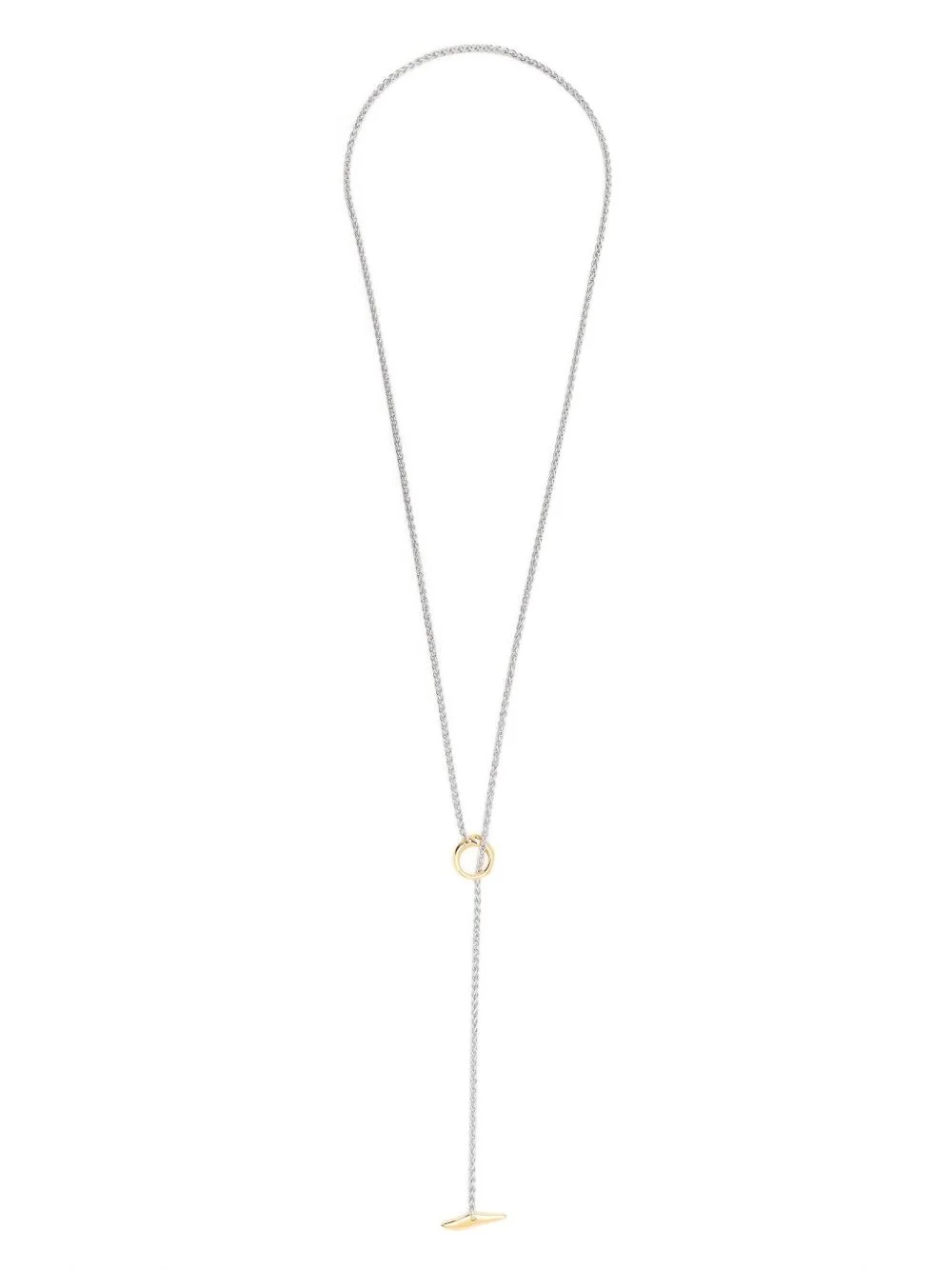 Robin Duo L chain necklace Highlights - Silver-tone/gold-tone - Sterling silver - White rhodium plated sterling silver - 9kt gold-plated sterling silver - Polished finish - Wheat chain - T-bar fastening Imported SIZE & FIT Model measurements Height 5 ft 9 in(1.75 m) Bust/Chest 34.64 in(88 cm) Hips 36.61 in(93 cm) Waist 26.37 in(67 cm) Measurement Length when open 40.15 in(102 cm) PENDANT LENGTH 0.82 in(2.1 cm) PENDANT WIDTH 0.78 in(2 cm) WIDTH 0.11 in(0.3 cm)