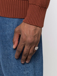 Shield satin signet ring Tom Wood takes inspiration from Scandinavian minimalism and functionalism, re-interpreting the classic signet ring with its modern and bold designs. Crafted in sterling silver, this signet ring is reiterated with its brushed satin shield design. Imported SIZE & FIT Model measurements Height 6 ft 2 in(1.89 m) Bust/Chest 35.43 in(90 cm) Hips 36.61 in(93 cm) Waist 28.74 in(73 cm) Measurement Band Width 0.27 in(0.7 cm) CIRCUMFERENCE 22.04 in(56 cm) Feature Length 0.55 in(1.4 cm) Feature Width 0.59 in(1.5 cm)