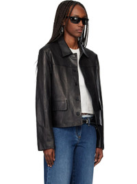 Grained lambskin jacket. · Spread collar · Button closure · Flap pockets at waist · Cropped hem · Welt pocket at interior · Satin lining Supplier color: Black Body: 100% lambskin. Lining: 50% polyester, 50% viscose. Made in South Korea 252251F064005