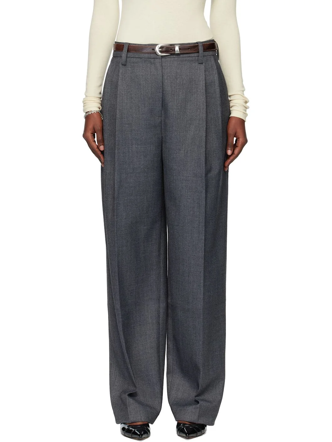 Wool-blend twill trousers. · Loose-fit · Mid-rise · Belt loops · Four-pocket styling · Zip fly · Pleats at front · Creased legs · Partial satin lining Supplier color: Grey Body: 50% wool, 50% polyester. Lining: 100% polyester. Made in South Korea 252251F087002