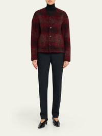 V-Neck Plaid Mohair Jacket