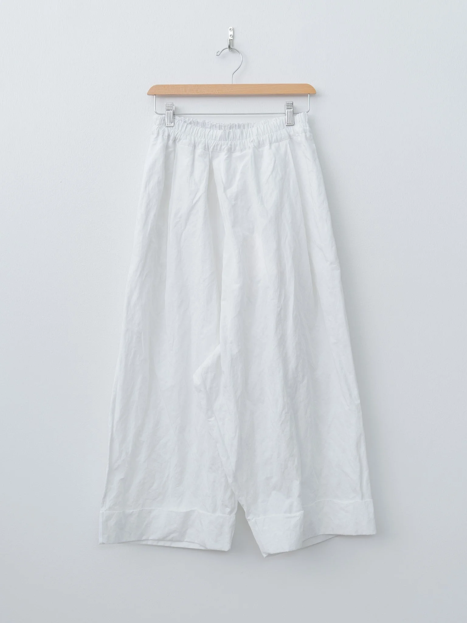 The Baker Trouser is a Toogood signature piece featuring a casual, voluminous fit. Details include front pleats, an elastic waistband with hidden drawstrings, side pockets, a low back patch pocket, and cropped, turned-up cuffs. The crumped cotton chalk is midweight with a beautiful texture - a summer staple. - Made in Portugal - 99% Cotton, 1% Elastane - Available in Tablecloth Gingham Coffee, Crumpled Cotton Chalk, and Poplin Tomato - The model is 5'7" (170 cm) and wears size S