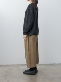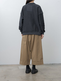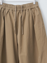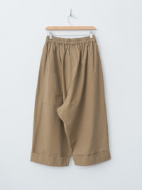 The Baker Trouser is a cropped, voluminous trouser with front pleats and deep turned-up cuffs. The fine cotton canvas is midweight and smooth, featuring a deep garment dye. Details include a low back patch pocket, hidden side pockets, and a fully elasticated waist with an inner drawstring for adjustment. - Made in Portugal - 100% Cotton - Available in Fine Canvas Ink and Fine Canvas Cardamom - The model is 5'8"/173cm and wears size S