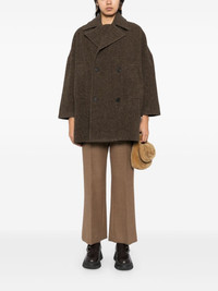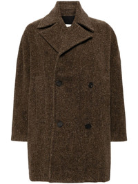 the logger coat Highlights - Brown - Wool - Cotton - Ulster lapels - Double-breasted button fastening - Two side welt pockets - American rear vent - Straight hem Imported Composition Lining: Cotton 100% Outer: Wool 100% SIZE & FIT Model measurements Height 5 ft 10 in(1.77 m) Bust/Chest 31.49 in(80 cm) Hips 35.43 in(90 cm) Waist 25.19 in(64 cm) FittingInformation Designed for an oversized fit, offering additional room throughout The vented hem offers movement at the rear Made from a midweight non-stretch fabric