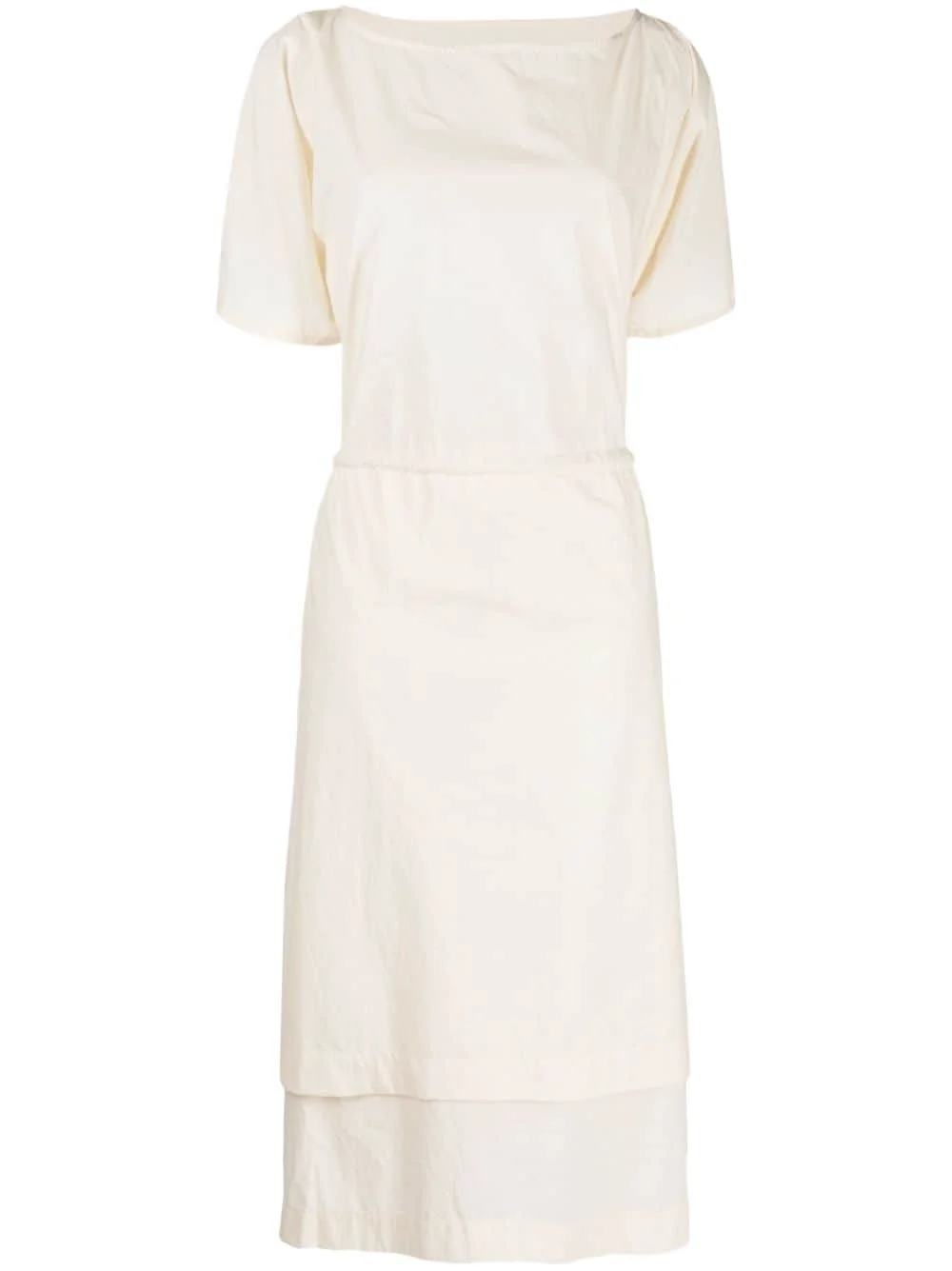 The Shimmer midi dress Highlights - Ivory white - Cotton - Pleat detailing - Layered details - Square neck - Short sleeves - Elasticated waistband - Mid-length - Handkerchief hem Imported Composition Body: Cotton 100% SIZE & FIT Model measurements Height 5 ft 10 in(1.78 m) Bust/Chest 30.31 in(77 cm) Hips 34.64 in(88 cm) Waist 24.01 in(61 cm) FittingInformation Designed to be unstructured, offering a loose fit throughout The adjustable drawstring means that you can adjust this piece’s fit to suit your comfort and preference Made from a midweight non-stretch fabric This piece fits true to size – take your usual size Washing instructions Hand Wash