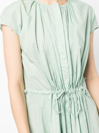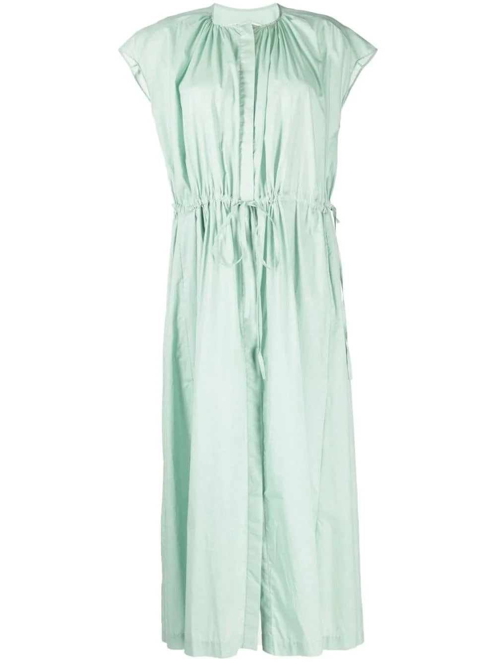 The Shrimper dress Highlights - Sea green - Cotton - Pleat detailing - Collarless - Concealed front fastening - Drawstring fastening waist - Cap sleeves - Short sleeves - Straight hem - Mid-length Imported Composition Body: Cotton 100% SIZE & FIT Model measurements Height 5 ft 11 in(1.8 m) Bust/Chest 28.34 in(72 cm) Hips 35.43 in(90 cm) Waist 23.62 in(60 cm) FittingInformation Designed to be unstructured, offering a loose fit throughout The adjustable drawstring means that you can adjust this piece’s fit to suit your comfort and preference Made from a midweight non-stretch fabric This piece fits true to size – take your usual size Washing instructions Machine Wash