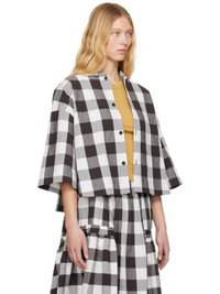 Boxy-fit crinkled stretch cotton poplin shirt. Check pattern throughout. · Spread collar · Button closure · Cropped hem · Vented side seams · Dropped shoulders Supplier color: Coffee 99% cotton, 1% elastane. Made in Poland 251676F109001