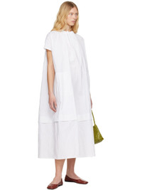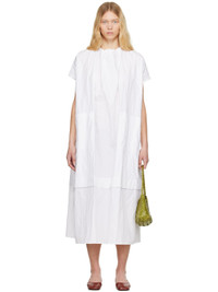 Crinkled cotton-blend poplin poplin midi dress. · Gathering at round neck · Patch pockets at front · Tiered hem · Cap sleeves · Button closure at back collar Supplier color: Chalk 92% cotton, 8% metal fibre. Made in Portugal 251676F054000