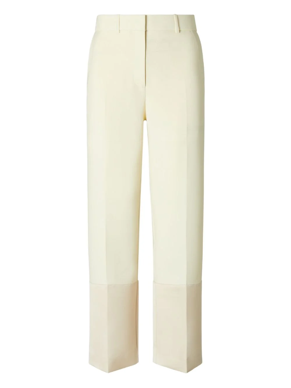 contrast-cuff trousers Highlights - Off-white - Crepe texture - High waist - Straight leg - Contrast cuffs - Zip fly Imported Composition Lining: Polyester 100% Outer: Triacetate 58%, Polyester 42% Washing instructions Read Manufacturer Guidelines