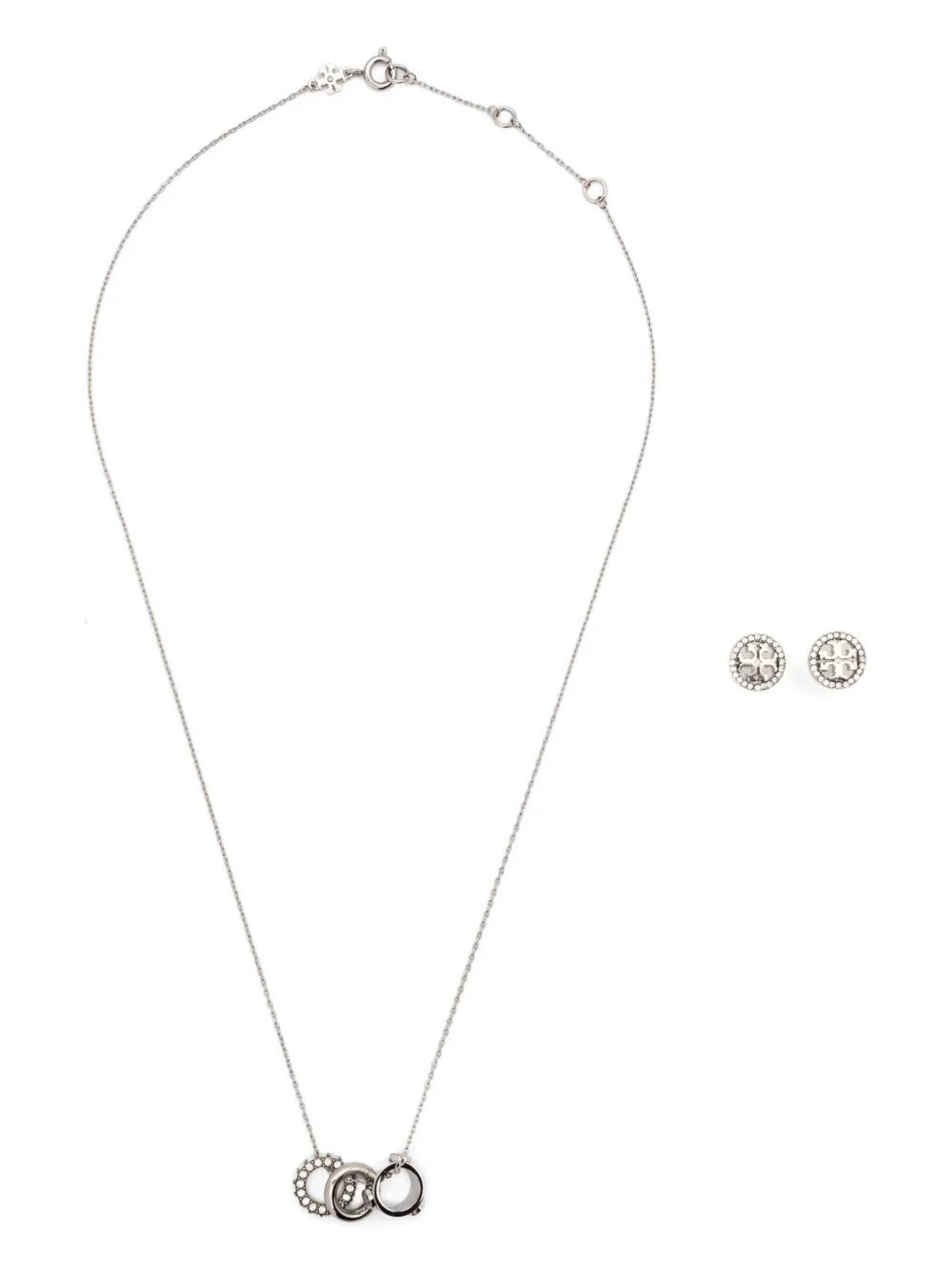 Icon crystal-embellished necklace and earring set Highlights - Silver-tone - Crystal embellishment - Logo detail - Stud earrings - Spring ring fastening - Post back fastening Imported SIZE & FIT Measurement Length when open 18.77 in(47.7 cm) Minimum Length 17 in(43.2 cm)