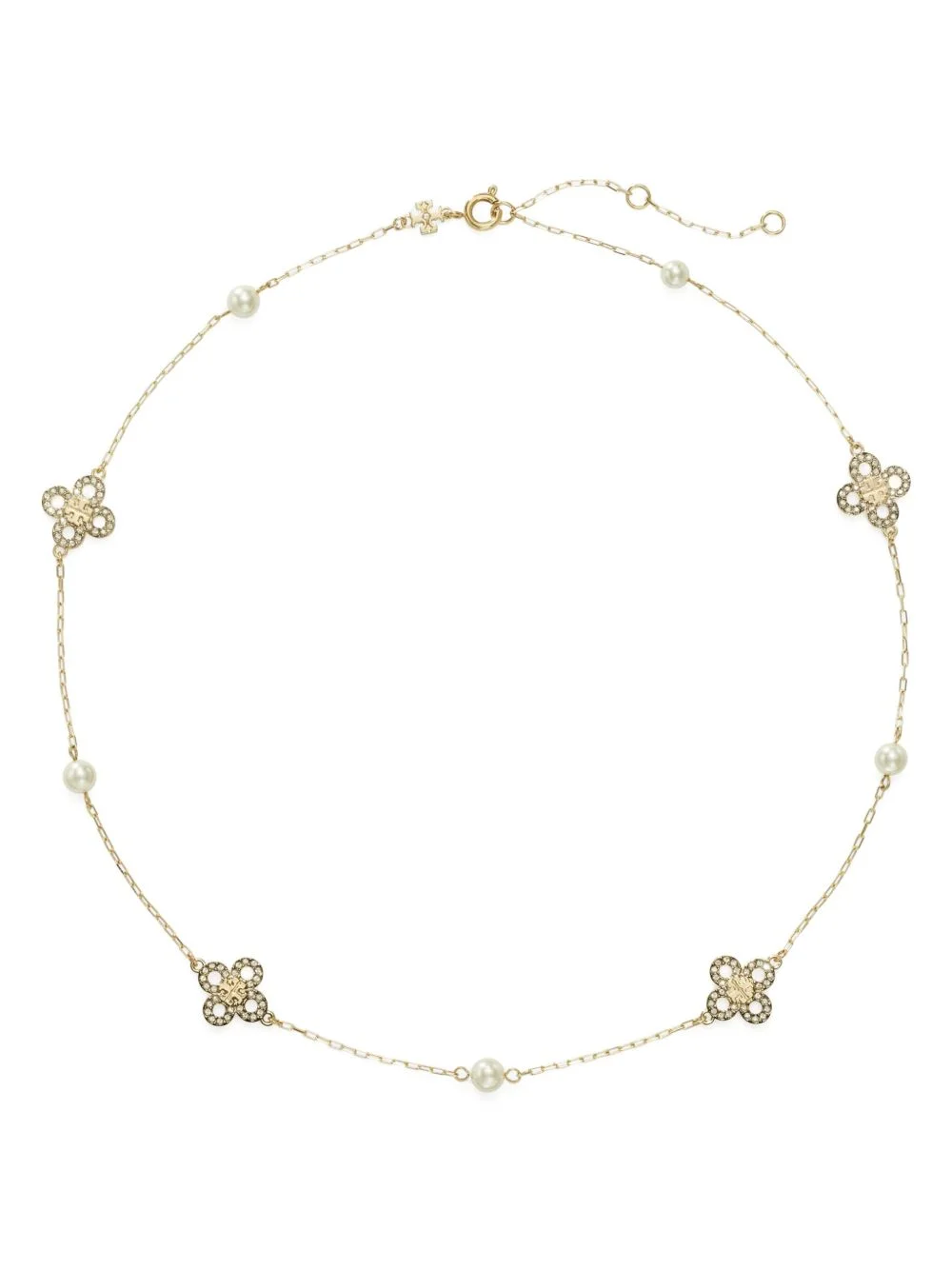 Kira Clover Pearl necklace Highlights - Gold-tone - 18kt gold plated brass - Pearl detailing - Charm detail - Delicate chain - Spring-ring fastening - Adjustable-length chain Imported