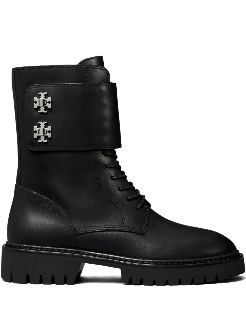 lug double-T boots Highlights - Black - Leather upper - Lace-up fastening - Lug sole - Silver-tone logo embellishments - Fold-over strap Imported Composition Lining: Nappa Leather 100% Outer: Leather 100% Sole: Rubber 100% SIZE & FIT Measurement HEEL 1.57 in(4 cm)