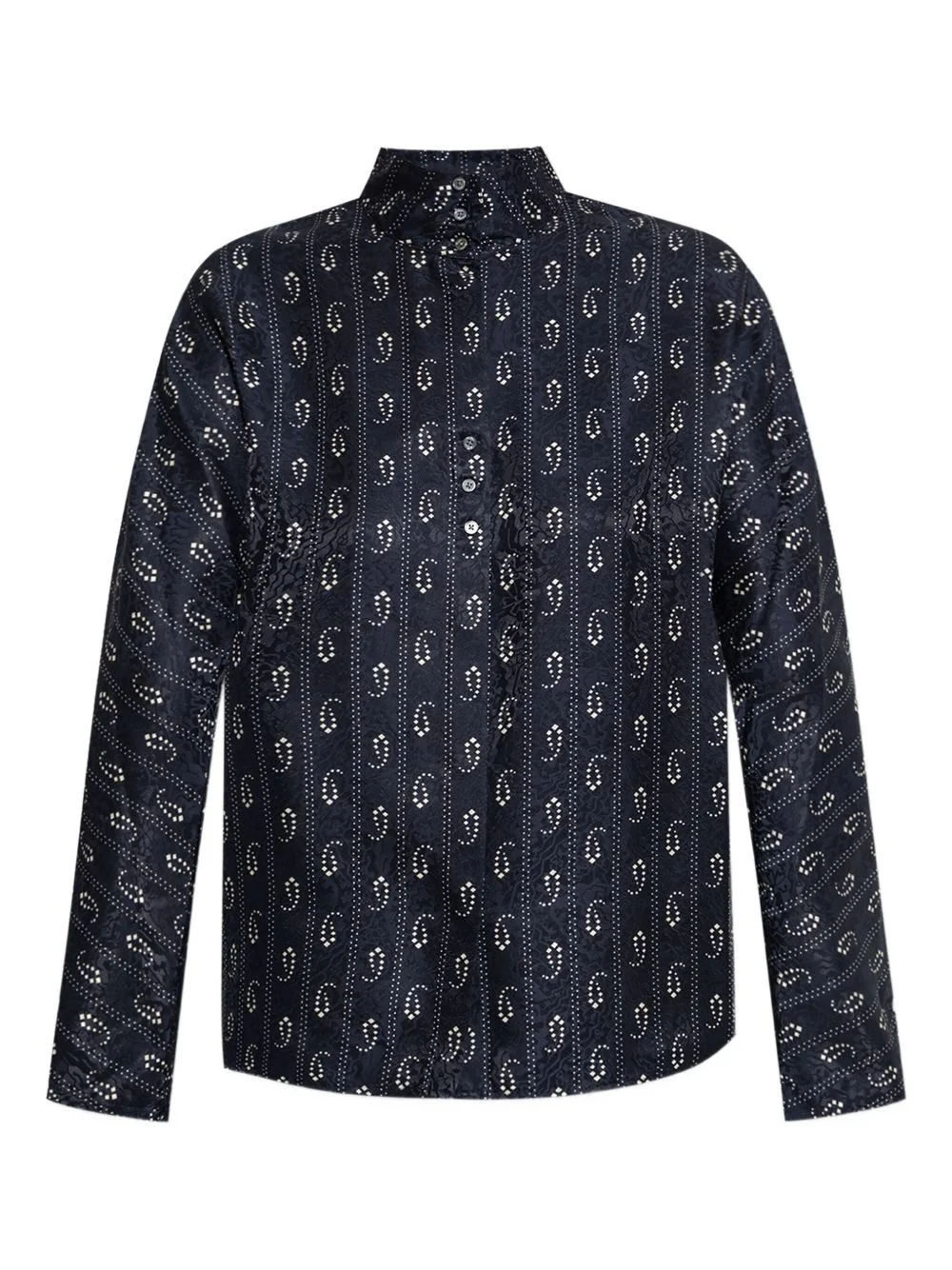 paisley print blouse Highlights - Navy blue - Paisley print - Button fastening - Mandarin collar - Long sleeves Imported Composition Viscose 100%