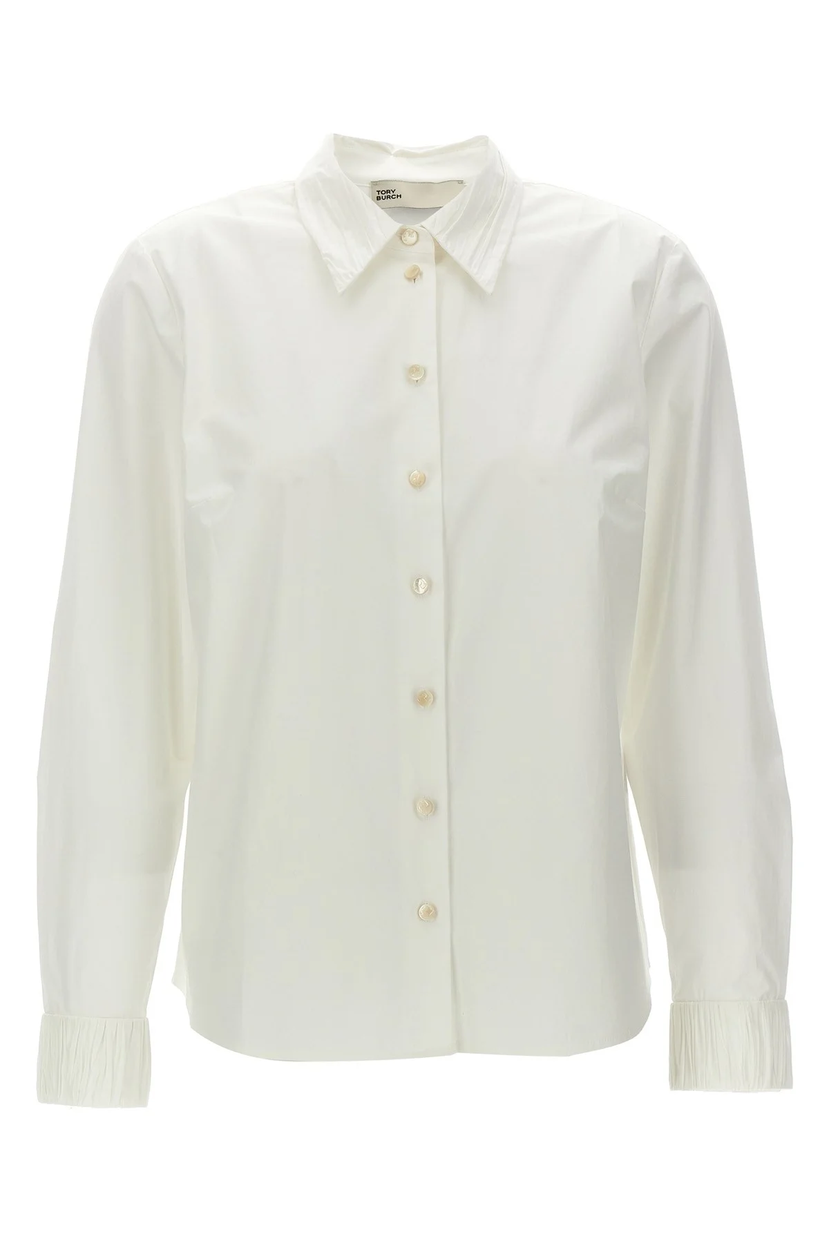 cod. 163363100 Cotton shirt with pleated details on collar and cuffs, long cuffed sleeves. Color: White Size & Fit: true to size fit US size Composition: 96% cotton, 4% elastane Made in: China