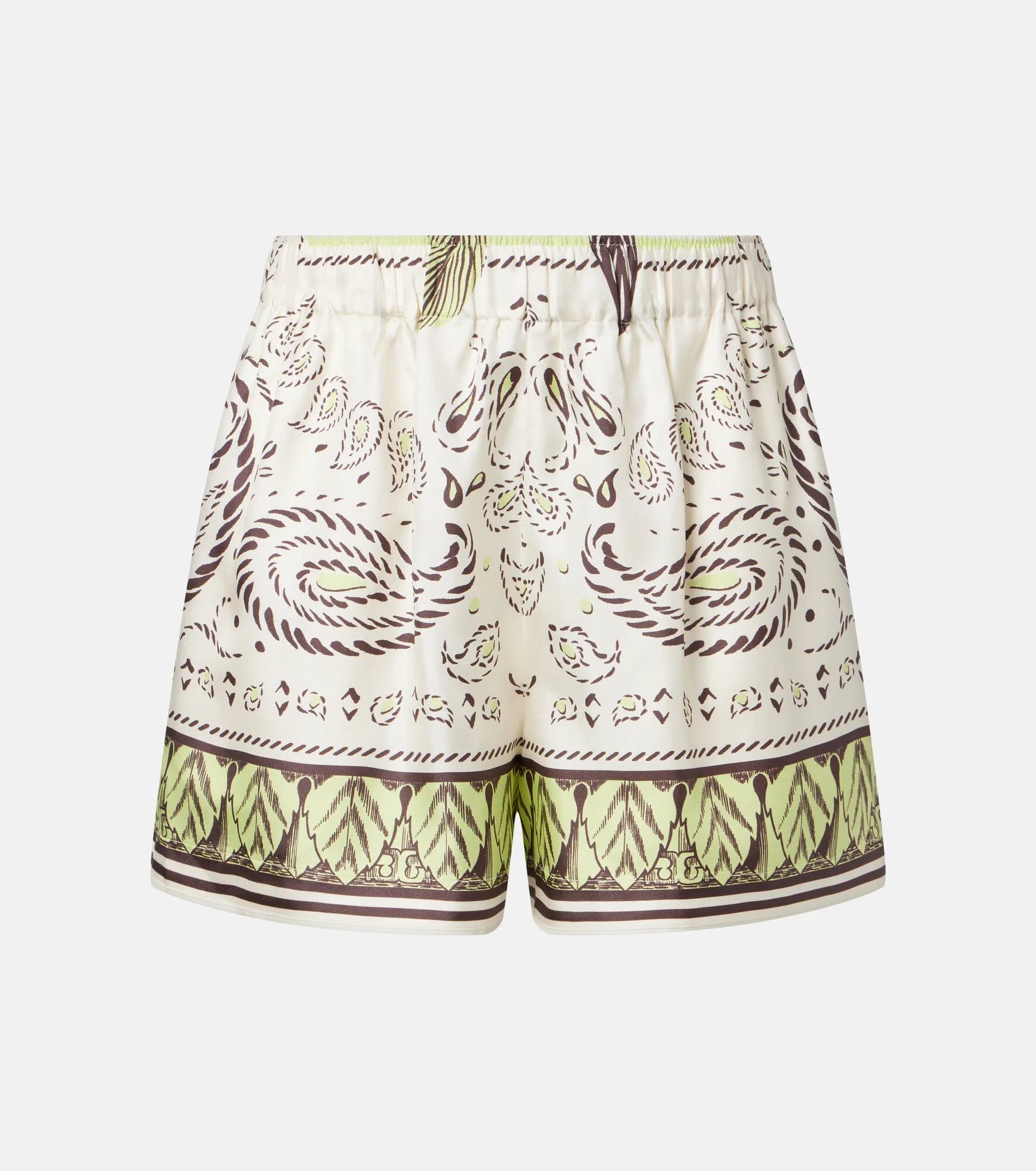 Tory Burch channels its signature Park Avenue sophistication into wearable separates that capture the essence of classic American style. These shorts are crafted from silk with an elasticated drawstring waistband and an all-over print. Product Details - Material: 100% silk - Care instructions: dry clean - Made in China - Color: multicoloured - Designer color name: Mint Cockatoo - Pocket lining: 100% silk - Elasticated drawstring waist - Pockets: side slit pockets - Item number: P01153192 Size & Fit - True to size - Elasticated waist - Non-stretchy fabric - Wide-leg - The model seen in the picture is 178cm-5'10" and wearing a size XS