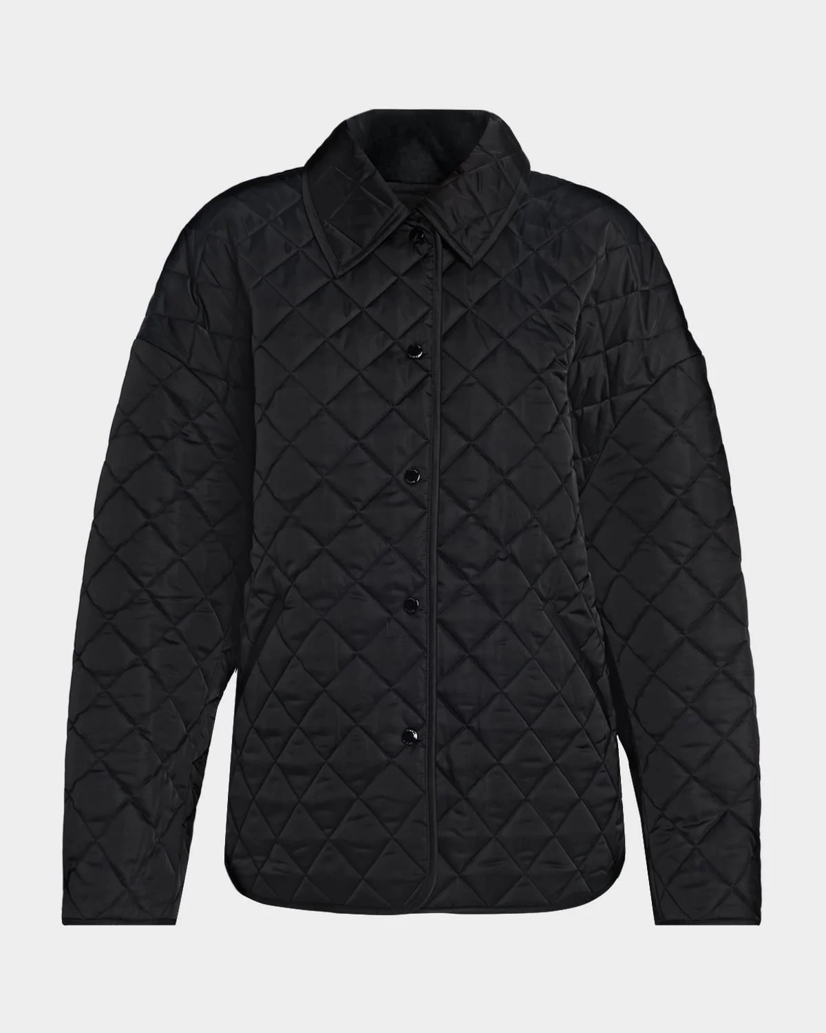This signature quilted jacket by Toteme features an elongated length for a more structured silhouette Point collar Dropped shoulders Long sleeves Angled side pockets Relaxed fit Hip length Front snap closure Polyester Lining: Polyester Dry clean Made in Portugal