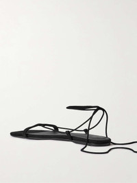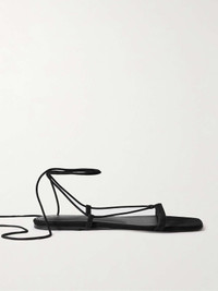 EDITORS'NOTES TOTEME's square-toe sandals are made from soft suede and have especially slim straps that frame the foot before wrapping elegantly around the ankle. Wear them with cropped pants or midi skirts to showcase the entirety of the design. This product was created using Considered Processes. Find out more about NET SUSTAIN here. SIZE & FIT - Fits small to size, take a full size larger than normal - Italian sizing DETAILS & CARE - Slight heel - Black suede (Sheep) - Ties at ankle - By purchasing this product, you are supporting responsible leather manufacturing through Leather Working Group.