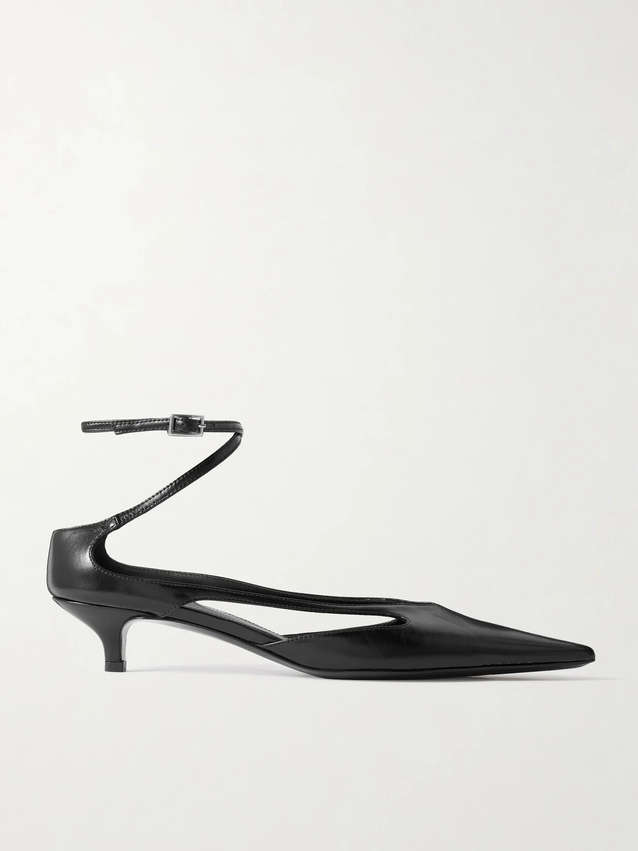 TOTEME's pumps are spliced with cutouts, gently framing the arches and sides of your feet. Crafted from black leather, they're set on slender kitten heels and have elegant ankle straps.
