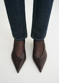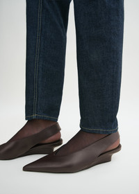 Seen throughout the FW24 runway show, these TOTEME slingback pumps are set on a demure 40mm heel with a tapered half-wedge silhouette. They are crafted in Italy from smooth Nappa leather lined in leather and are elasticated at the back for a comfortable fit. Wear them during the week with heels. Details & Fit - Bark - Elasticated slingback strap - Leather lining - Half-wedge heel - 100% calf leather; lining: 100% sheep leather; sole: 100% cow leather - Care instructions and dust bag included - Style number 244-WAS0165-LE0014 - Average heel height 40mm/1.6" proportional to shoe size - True to size