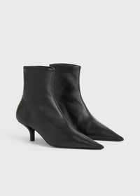 TOTEME ankle boots with an elasticated construction for a barely there, sock-like fit. They are crafted in Italy from supple Nappa leather with a neoprene reverse for elasticity and are set on a 55mm sole with an elongated shape and pointed toe. Add a blouse and trousers to complete an office look. Details & Fit - Black - 100% calf leather; lining: 100% sheep leather; sole: 100% cow leather - Care instructions and dust bag included - Style number 244-WAS0161-LE0089 - Average heel height 55mm/2.2" proportional to shoe size - True to size