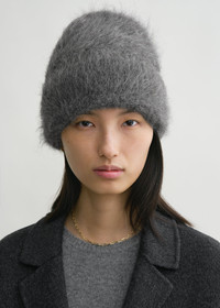 TOTEME beanie hat imagined as a warm winter set complete with the Boxy alpaca knit. It Is knitted from a fuzzy alpaca blend with a melange effect and can be worn with the edge folded or extended. Details & Fit - Dark grey melange - 78% alpaca, 19% polyamide recycled, 3% elastane - Cool hand wash - Style number 244-WSH1524-YA0106
