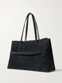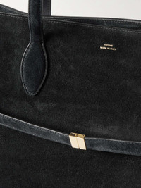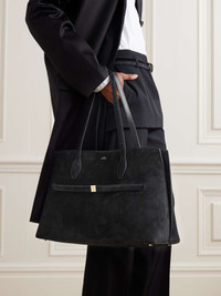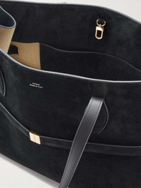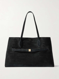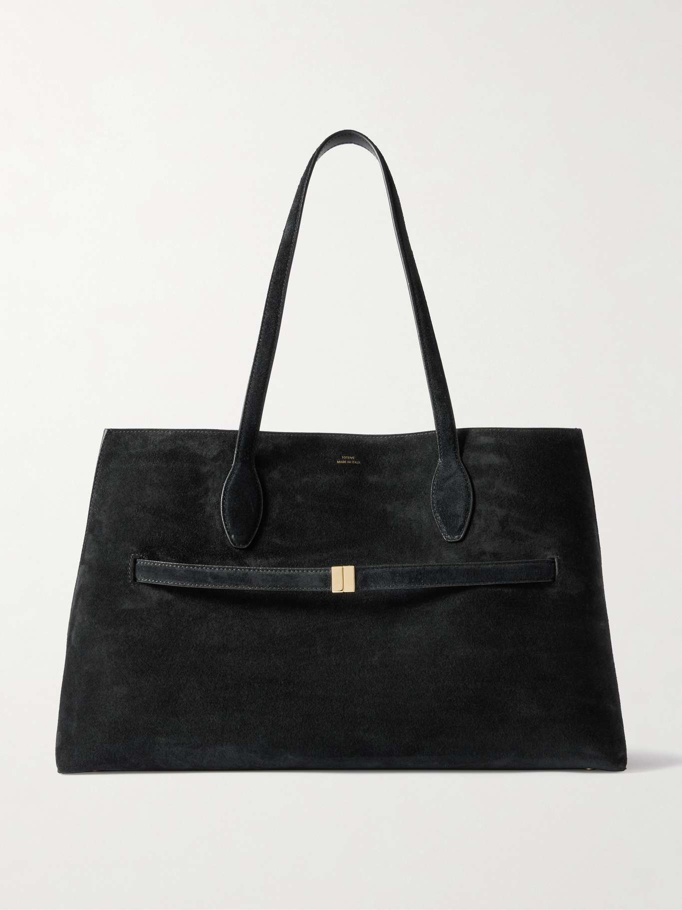 EDITORS'NOTES Made in Italy from soft suede, TOTEME’s large 'Lounge' tote is subtly accented with gold-tone hardware and branding. It's spacious enough to store your current read, tablet and a change of shoes. SIZE & FIT This item’s measurements are: - Handle Drop: 25cm / 9.8in - Depth: 15cm / 5.9in - Height: 28cm / 11in - Width: 44cm / 17.3in DETAILS & CARE - Black suede and leather (Calf) - Top handles - Internal slip pocket - Suede lining - Clasp fastening at open top - Comes with dust bag - Weighs approximately 3.5lbs/ 1.6kg