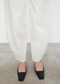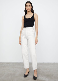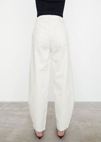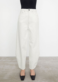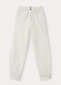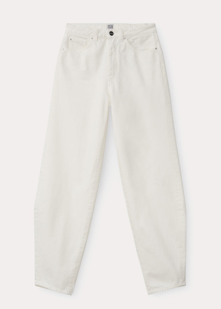 TOTEME jeans shaped with a signature wide barrel leg silhouette that curves sculpturally towards the cuffs. They're made in Italy from rigid organic-cotton denim that will mold to fit you perfectly over time and have a high waist and comfortable hips accented with a zipper fly, belt loops, five pockets, and a back monogram patch. Wear them with flats to work or with sneakers to the park. Details and fit - Off-white - Zipper fly - Belt loops, five pockets - Monogram leather patch - 100% Organic cotton - 30°C Machine wash - Style number 222-238-748 - Fits big, take one size down