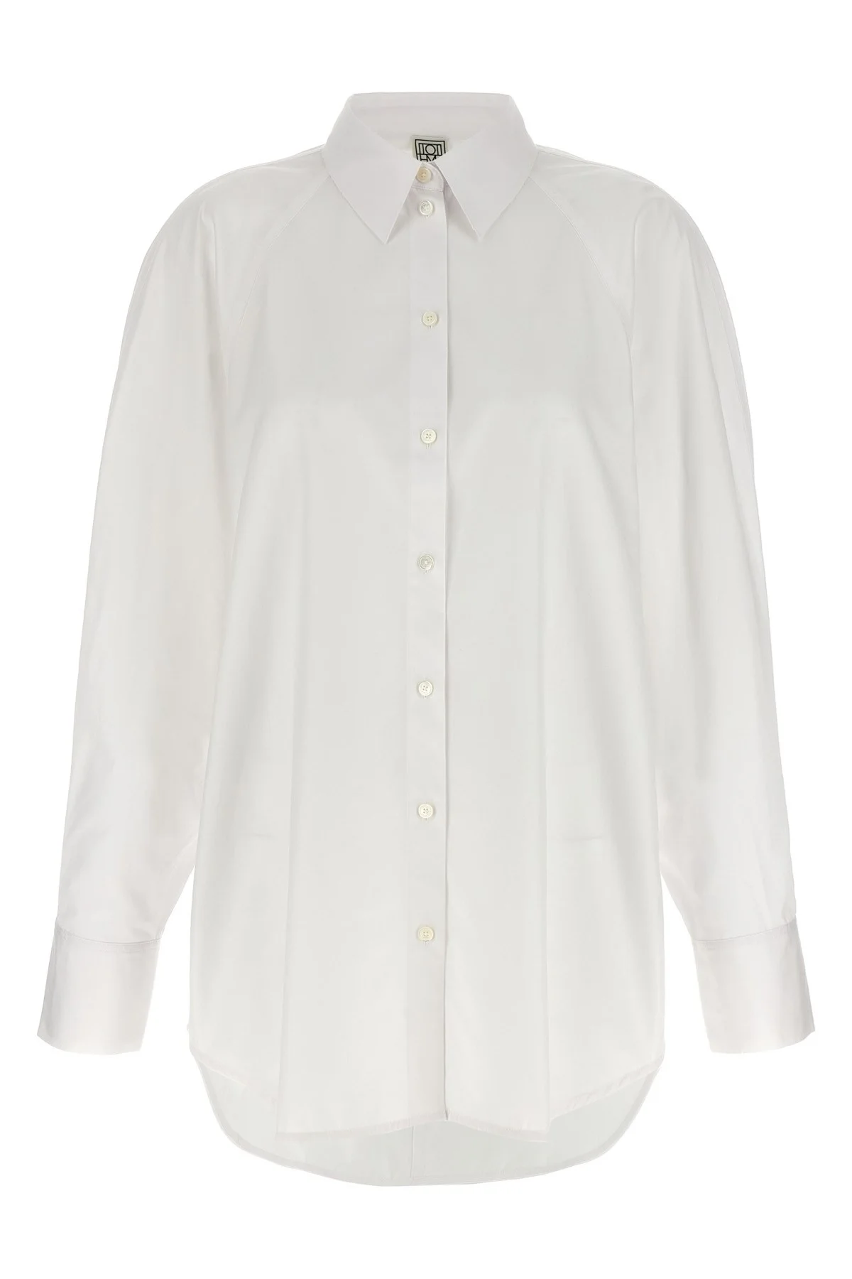 cod. 253WRT0515FB0226047 Cotton poplin shirt with front button closure, long bat raglan sleeves with cuffs, raw cut collar and cuffs. SUSTAINABLE: This product is made of organic cotton. Color: White Composition: 100% organic cotton Size&Fit: oversize fit - FRENCH size