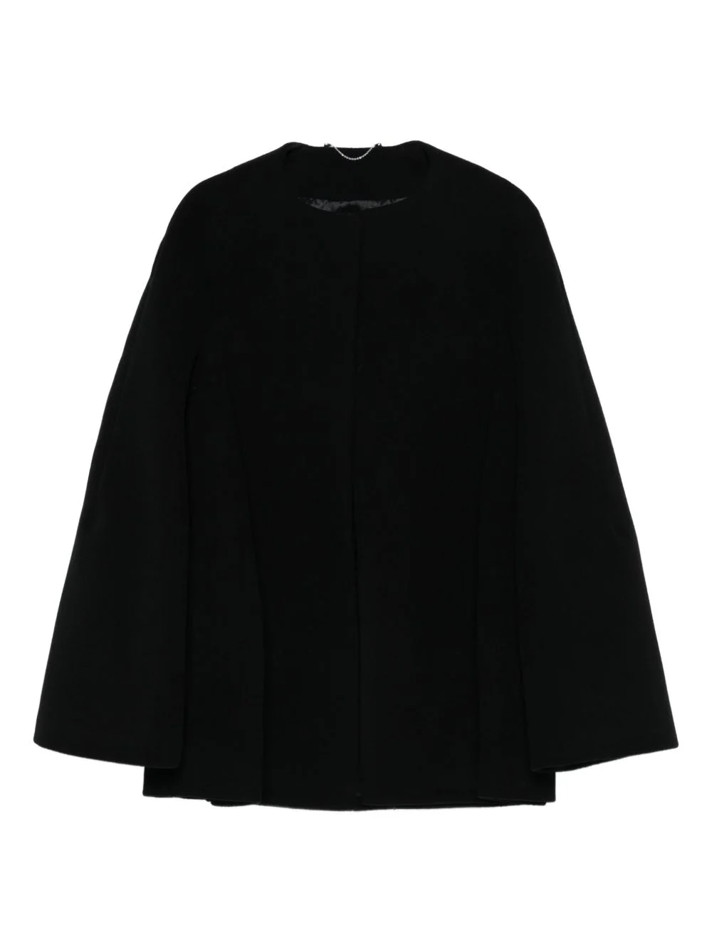 cape jacket Highlights - Black - Cape styling - Straight hem - Concealed fastening Imported Composition Recycled Wool 70%, Polyamide 25%, Recycled Cashmere 5% SIZE & FIT Model measurements Height 5 ft 9 in(1.75 m) Bust/Chest 34.64 in(88 cm) Hips 36.61 in(93 cm) Waist 26.37 in(67 cm) Washing instructions Read Manufacturer Guidelines