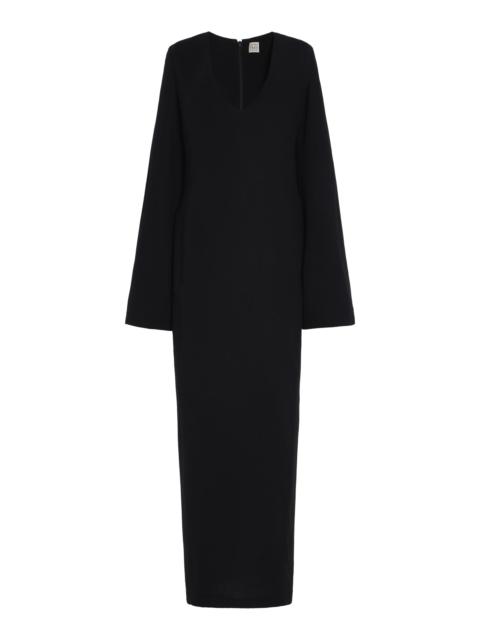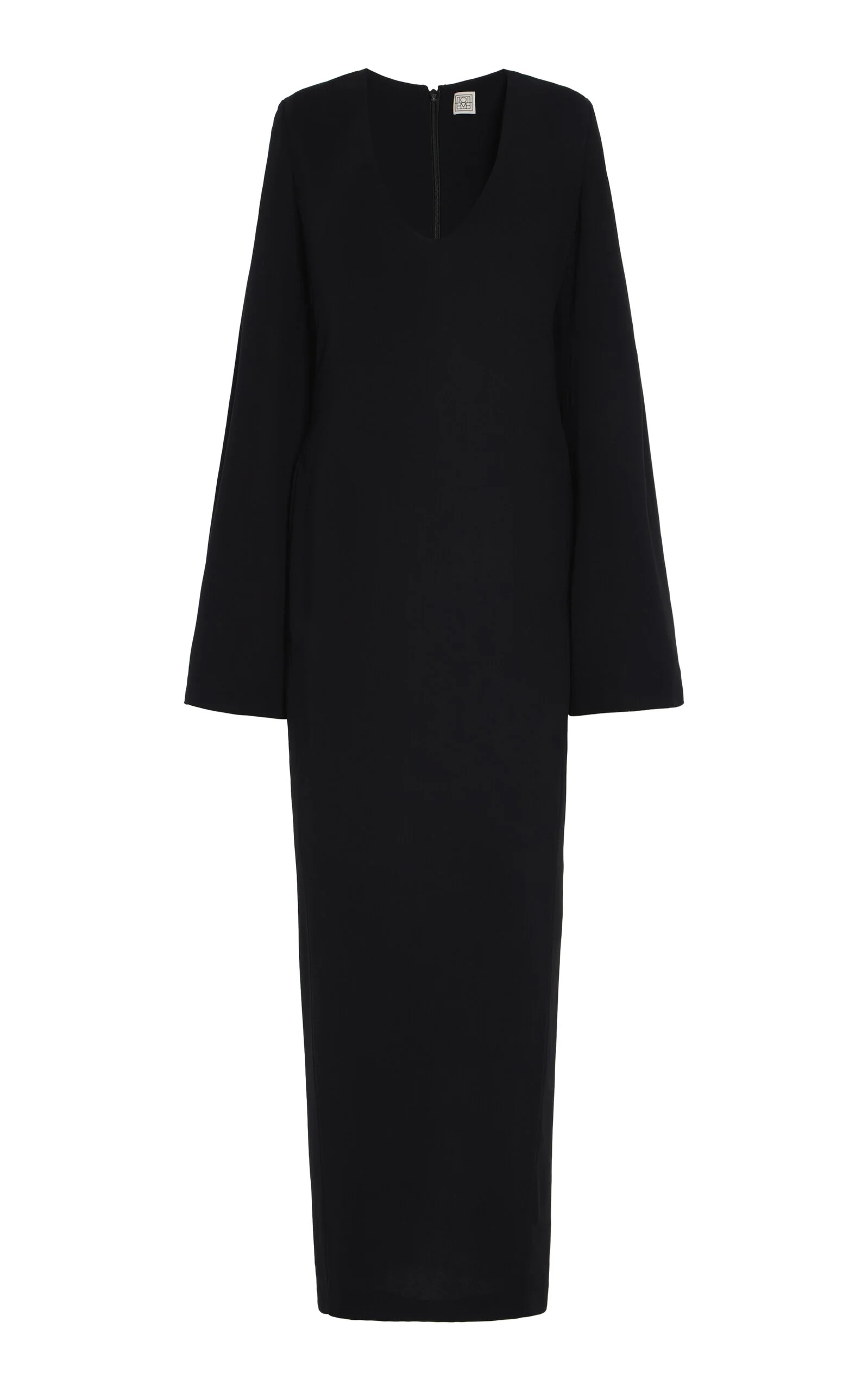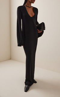 With its signature clean lines and minimalist style, Stockholm-based Toteme is the quintessential Scandi-cool. Elin Kling designs each collection as a modern uniform, looking to vintage pieces for inspiration and giving its cult following a dress code for every day. Made from a slinky knit, this maxi dress has a body-skimming silhouette with a deep U neck and bell sleeves. PRODUCT DETAILS - Fall '25 - Zip fastening - Composition: 100% viscose - Dry clean - Imported