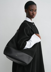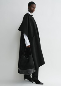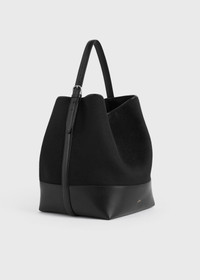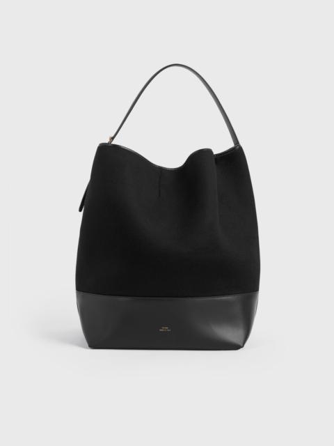 TOTEME tote bag revisited in our signature wool double to channel a wintry mood. Made in Italy, it has an adjustable strap set with a gold-tone buckle matching our Signature trouser belt and opens with a small clasp to an ample interior with three slip pockets. Details & Fit - Black - Leather trims, gold-tone metal hardware - Adjustable strap, internal clasp - Three internal slip pockets - 100% wool - Care instructions and dust bag included - Style number 251-WAL0069-FB0006 - Strap drop length: adjustable (29cm/11.4" on middle hole) - Height 37cm/14.5" - Width 29cm/11.4" - Depth 26cm/10.2"