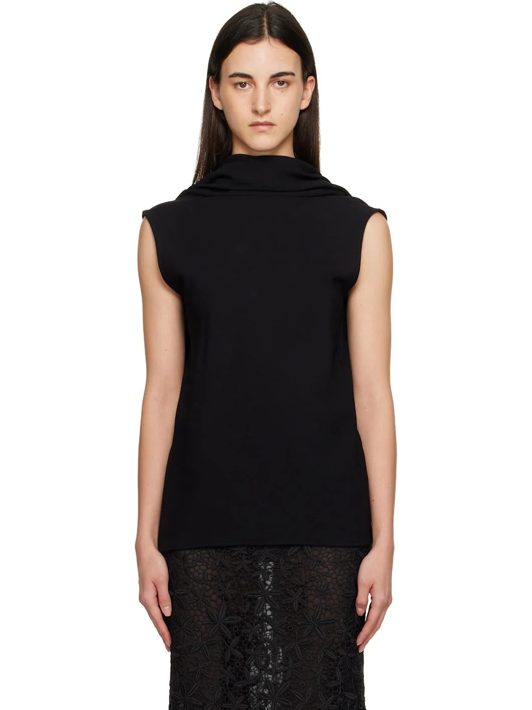Viscose- and wool-blend twill blouse. · Cowl neck · Shirttail hem · Draping at back Supplier color: Black 60% viscose, 40% wool. Made in Portugal 252771F107007