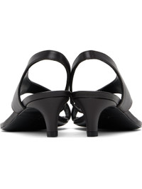 LWG-certified grained sheepskin heeled sandals in black. · Open square toe · Thong-style strap at vamp · Elasticized slingback strap · Logo patch at padded footbed · Covered kitten heel with rubber injection · Leather sole · Heel: H2" Supplier color: Pepper Upper: sheepskin. Sole: leather. Made in Spain 251771F125004