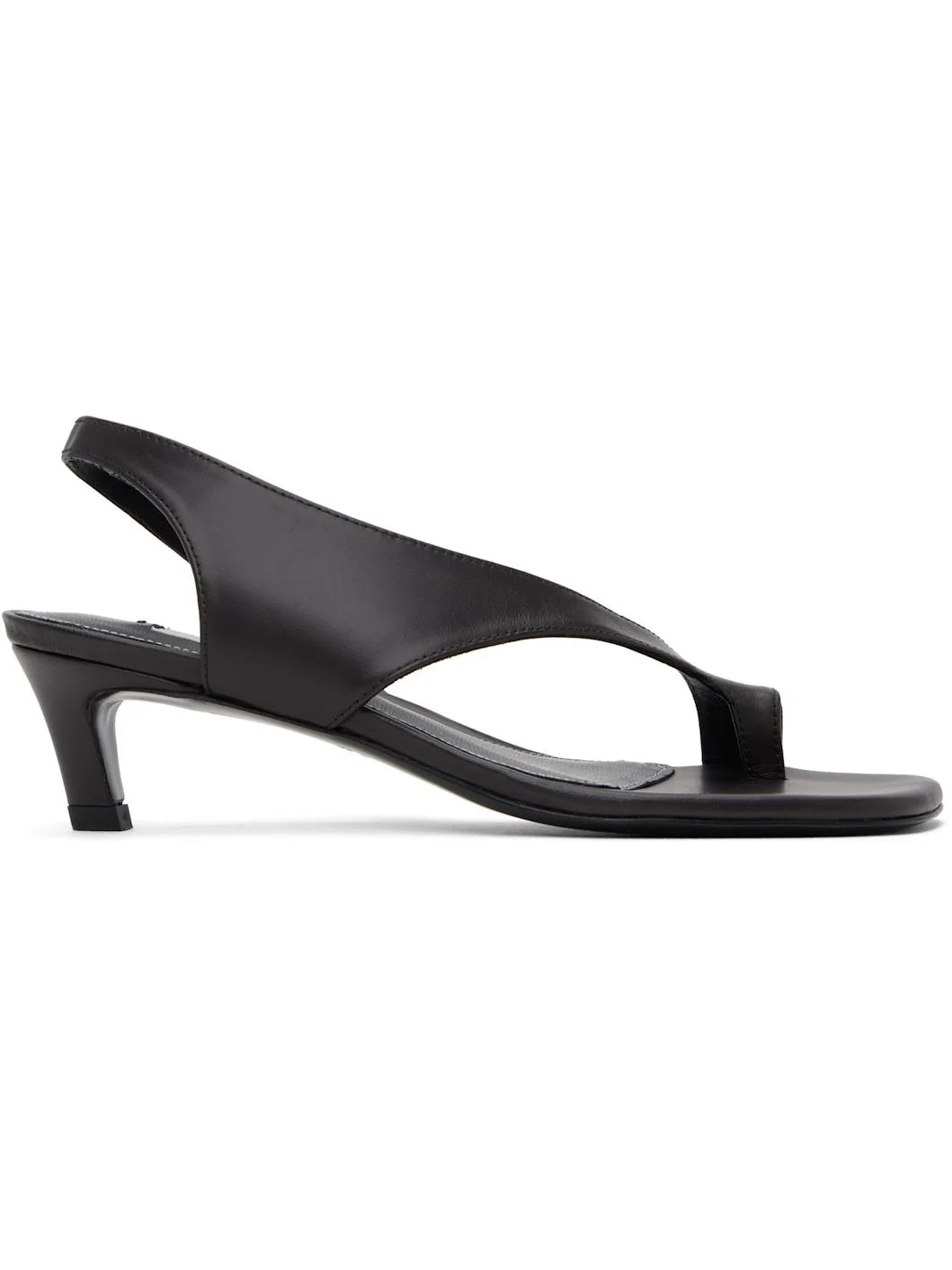 Black Leather Thong Heeled Sandals