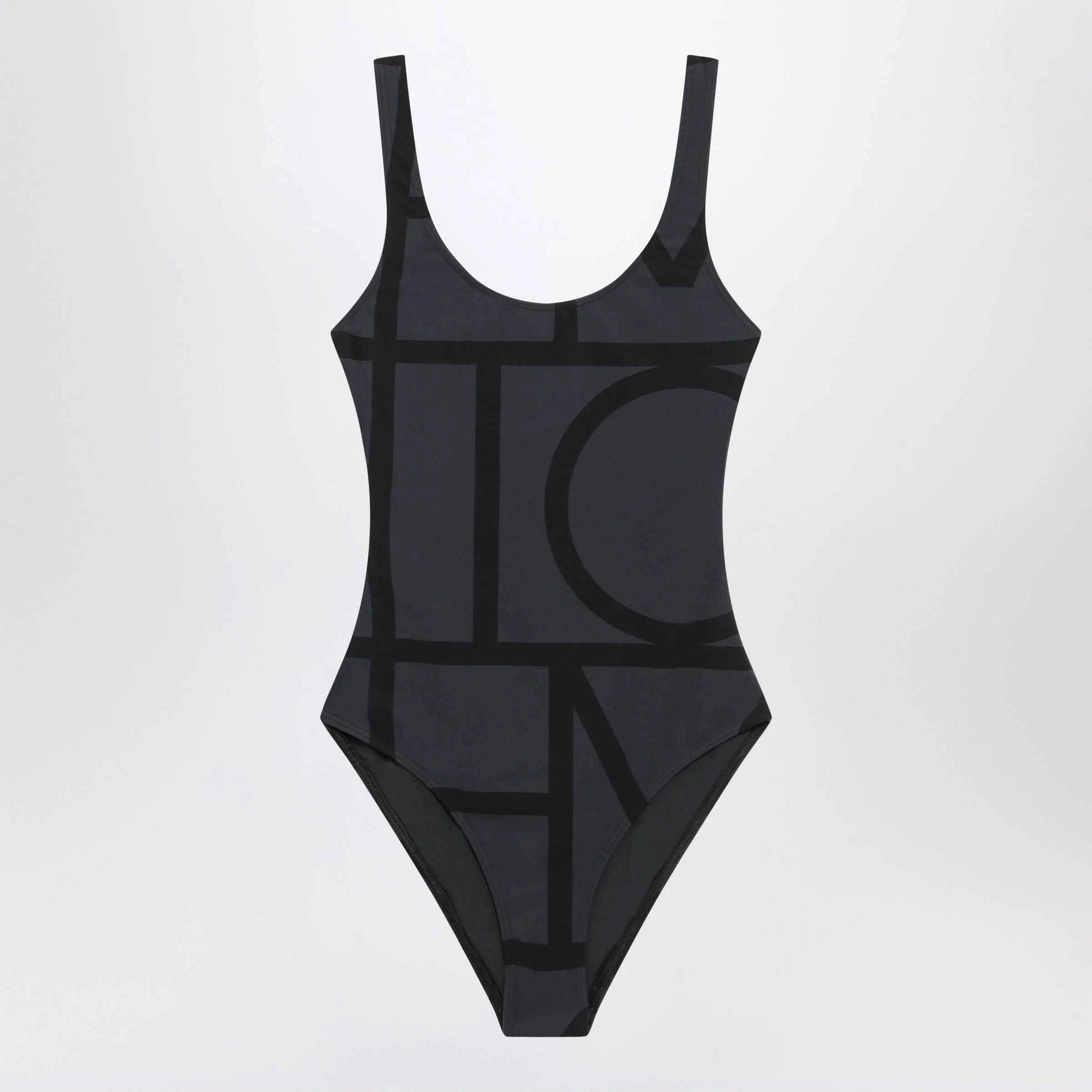 Swimsuit by TOTEME in stretch recycled polyamide blend• Color: Black• Contrasting monogram motif• Deep U-back