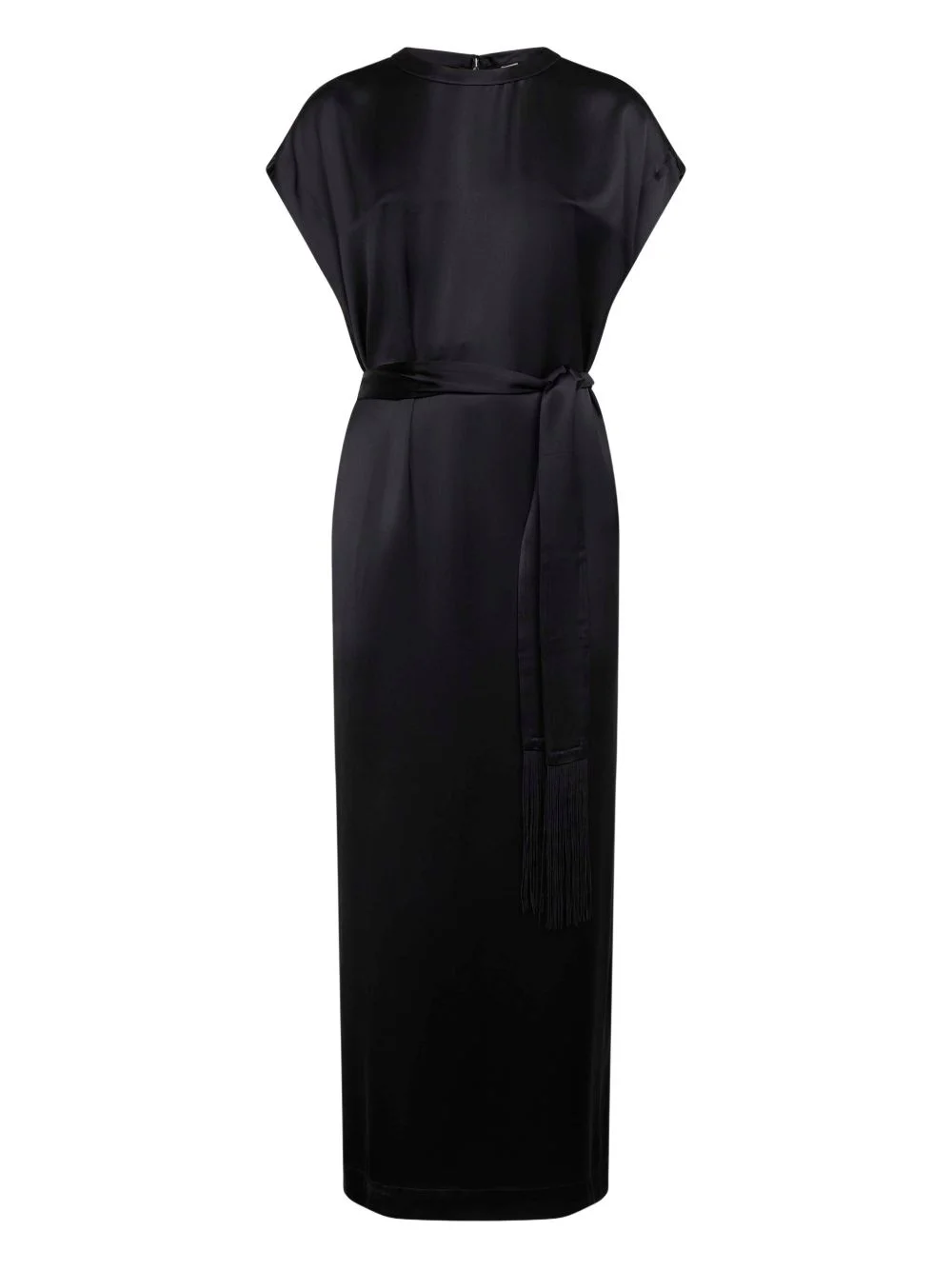 belted maxi dress Highlights - Black - Crew neck - Short sleeves - Detachable adjustable belt - Back zip closure Imported Composition Viscose 100% Washing instructions Read Manufacturer Guidelines