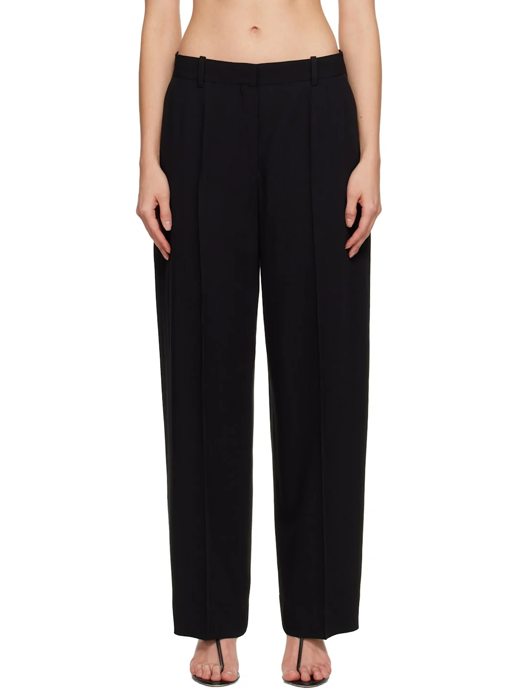 Plain-woven viscose- and wool-blend trousers. · RWS-certified wool · Low-rise · Belt loops · Four-pocket styling · Zip fly · Creased legs Supplier color: Black 60% viscose, 40% wool. Made in Portugal 252771F087009
