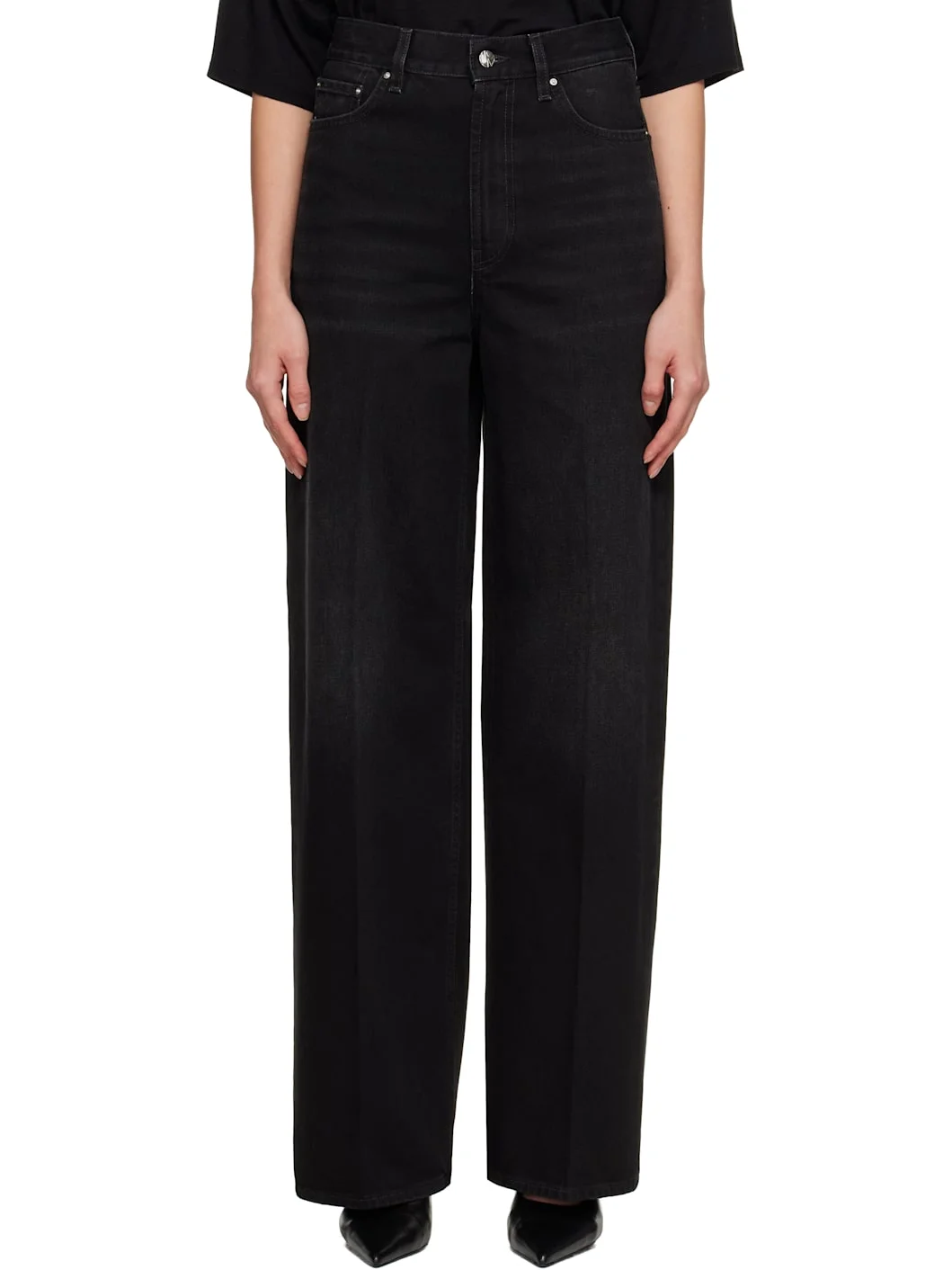 Non-stretch organic cotton denim jeans. · Fading and whiskering throughout · Wide-leg · Belt loops · Five-pocket styling · Zip fly · Creased legs · Logo patch at back waistband Supplier color: Faded black 100% cotton. Made in Italy 252771F069017