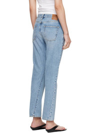 Non-stretch organic cotton denim jeans. Fading and whiskering throughout. · Straight-leg · Mid-rise · Belt loops · Five-pocket styling · Zip fly · Twisted outseams · Leather logo patch at back waistband · Silver-tone hardware · Contrast stitching in tan Supplier color: Worn blue 100% organic cotton. Made in Italy 252771F069009
