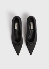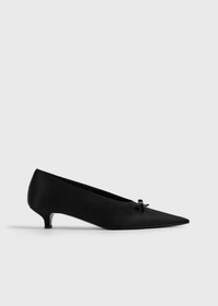 Sharp kitten pumps presented in lustrous satin decorated with a delicate bow for festive occasions. Details & Fit - Black - Bow applique - Leather lining, insole and sole - Cushioned insole - 87% polyester recycled, 13% polyethylene; lining: 100% sheep leather; sole: 100% cow leather - Care instructions and dust bag included - Style number 261-WAS0284-FB0401 - Average heel height 35mm/1.4" proportional to shoe size - True to size