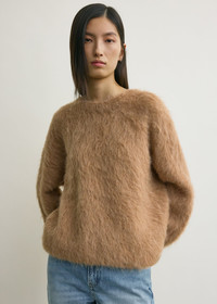 This crew-neck version of our recognizable boxy knit has an extra-wide silhouette for a cozy feel that is distinctive of TOTEME. It is knitted from mid-weight, hairy alpaca blended with recycled polyamide and elastane and has wide sleeves falling on the sides. Throw it on over jeans. Details & Fit - Camel melange - 78% alpaca, 19% polyamide recycled, 3% elastane - Cool hand wash - Style number244-WRT873-YA0106 - The model is 180cm/5'11 tall and wears a size XS/S - Designed for an oversized fit, go down a size if you prefer a neater look